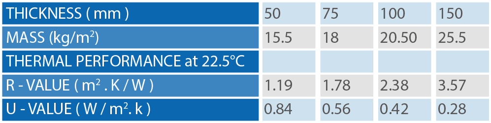 Muka logam adalah baja pra-cat setebal 0,6 mm dengan kekuatan luluh 300 mPa. Wol mineral inti memiliki kepadatan 100 kg/m3. Permukaan baja diikat ke inti dengan perekat struktural termoset dua komponen.